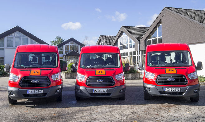 Wir setzen auf sichere Beförderung in modernen, speziell umgerüsteten Klein- und Rollstuhlbussen. Für neue Aufträge kommen ausschließlich neuwertige Fahrzeuge der Marken Ford und Opel zum Einsatz. Die Umrüstung sowie die Begurtungssysteme entsprechen selbstverständlich den hohen Sicherheitsstandards nach DIN 75078 Teil I und II.